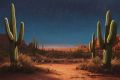 Starlit Night Over Saguaro Cacti in Mesa, Arizona: A Canvas Print