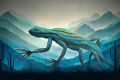 Vibrant Chameleon Artwork Amidst Stylized Arizona Mountains