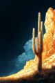 Captivating Mesa Night: Saguaro Cacti Under Moonlit Skies