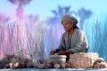 Artisan Mastery: Elderly Weaver At Work Among Nature's Palette