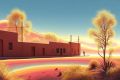 Artistic Interpretation of Rural Mesa with Vibrant Geometric Shapes