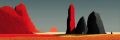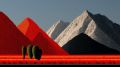Vivid Contrast in Mesa: Red Fields and Monochrome Mountains