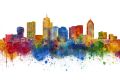 Colorful Watercolor Splash Depicting the Mesa Arizona Skyline