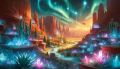 Vibrant Abstract Tendrils Overlooking a Serene Desert Lake