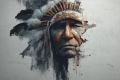 Introspective Gaze: Native American Inspired Portrait on Canvas