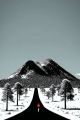 Lonely Red Figure on a Wintry Road to Mesa's Snow-Capped Mountain