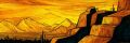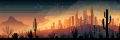 Twilight Descends on a Stylized Mesa Skyline with Cacti Silhouettes