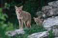 Coyote and Pup in Natural Habitat: An Intimate Wilderness Scene