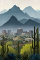 Enchanting Desert Flora and Fauna in Stylized Mesa, Arizona Artwork