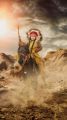 Majestic Native American Warrior Charging on Horseback at Sunset