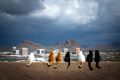 Feline Audience Overlooks Stormy Mesa Arizona Skyline