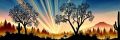 Radiant Sunrise in Mesa with Silhouetted Trees and Cacti