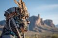 Portrait of a Native American in Traditional Attire Against Arizona Landscape