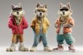 Stylish Trio of Raccoons Sporting Urban Fashion on Canvas
