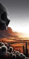Surreal Desert Vista with Monolithic Skull and Cacti at Sunset