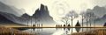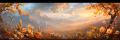 Surreal Autumn Landscape with Native American Imagery and Geometric Elements