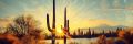 Vibrant Sunset Behind Saguaro Cacti in Mesa Arizona Artistic Panorama