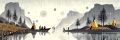 Monochromatic Serenity: Indigenous Tents by a Tranquil Lake