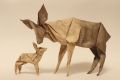 Evocative Origami Art: Newspaper Crafted Deer in Proximity