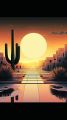 Vivid Sunset Glow Over Cacti in Arizona's Desert Canvas