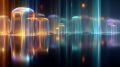 Illuminated Abstract Shapes Over Water Reflecting Brilliant Hues