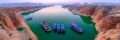 Tranquil Dawn at Lake Powell with Serene Houseboat Gathering