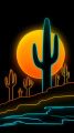 Vibrant Neon Sunset Behind Iconic Saguaro Cactus in Arizona