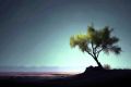 Serene Twilight at Mesa: A Lone Tree Against Distant Mountains
