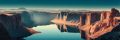 Serene Mesa Landscape with Golden Poppies and Tranquil Waters
