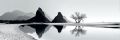 Serene Reflections: Black and White Landscape with Lonely Tree