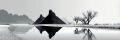 Reflective Serenity: Monochrome Landscape Canvas of Mesa, Arizona