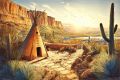 Sunlit Desert Vista with Traditional Native American Teepee