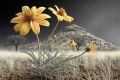 Golden Blooms of Mesa: Vibrant Wildflowers Against Mountain Backdrop