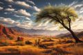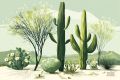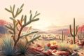 Serene Mesa Landscape: Desert Flora in Artistic Splendor