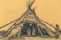 Vintage Styled Illustration of Native American Teepee and Life
