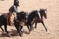 Rugged Western Charm: Cowboy Guides Horses through Dusty Arena