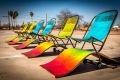 Vibrant Colors Adorn Sunlit Poolside Lounge Chairs in Mesa