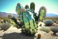 Serene Desert Landscape with Vibrant Cacti and Mountains in Mesa