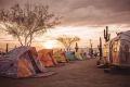 Sunset Over Colorful Tents and Airstream Trailers in Mesa, Arizona