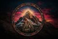 Majestic Mountain Peak at Sunset Encircled by Native-Inspired Border
