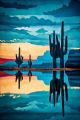 Surreal Desert Scene: Cacti Glowing under the Arizonan Sun