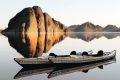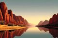 Serene Reflections: Kayaks on a Mirror-Like Lake in Mesa, Arizona