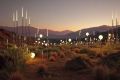Illuminated Spheres in a Desert Landscape at Twilight