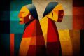 Abstract Geometric Artwork of Two Native American Figures