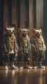 Stylish Trio of Golden Bear Statues in Urban Outfits on Display