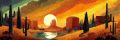 Vibrant Dawn Over Mesa: A Stylized Artistic Tribute to Arizona