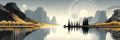 Enchanting Twilight with Golden Blooms and Serene Waterscape