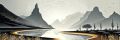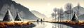 Mesmerizing Monochrome Landscape with Teepees Reflecting on Water