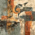 Evocative Abstract Artwork Blending Rustic and Modern Motifs