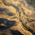 Aerial View of a Serpentine River Winding Through Desert Terrain